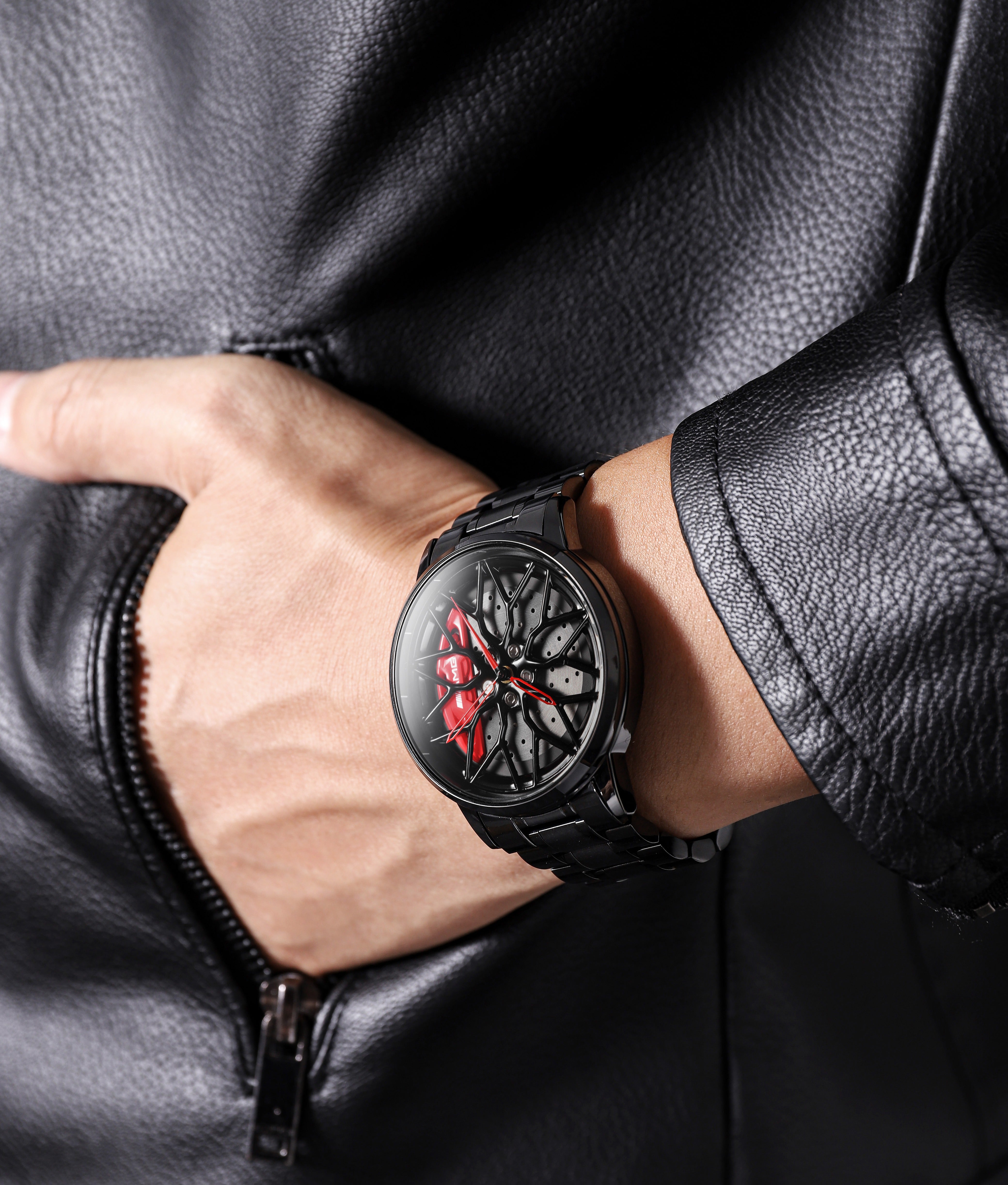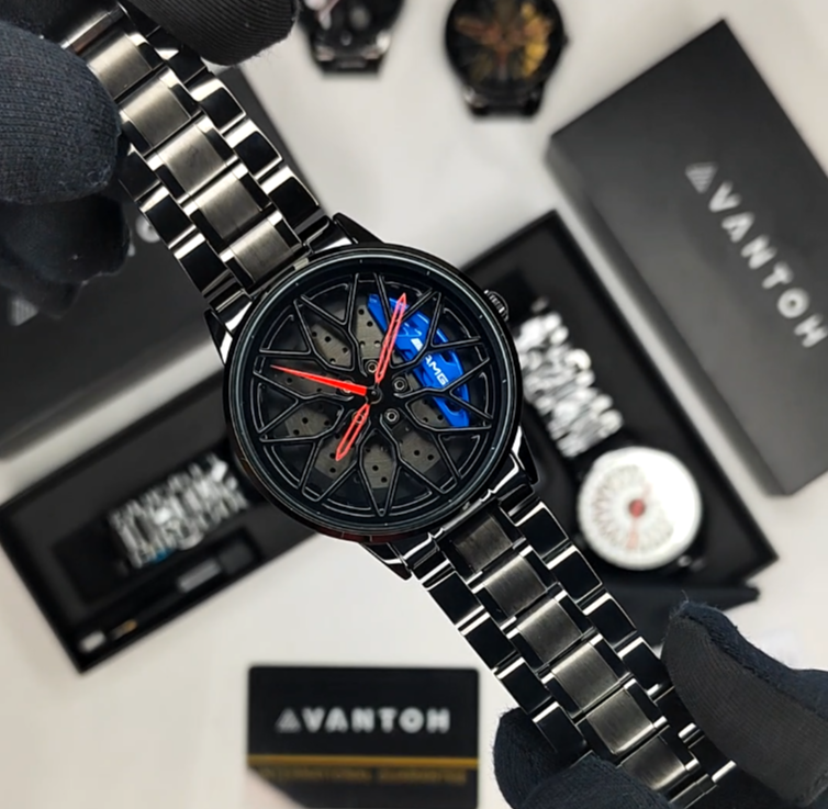 Pour les passionnés de voitures, la montre AVANTOH™ est un accessoire indispensable. Son design unique et audacieux rappelle une jante de voiture avec des étriers de frein.