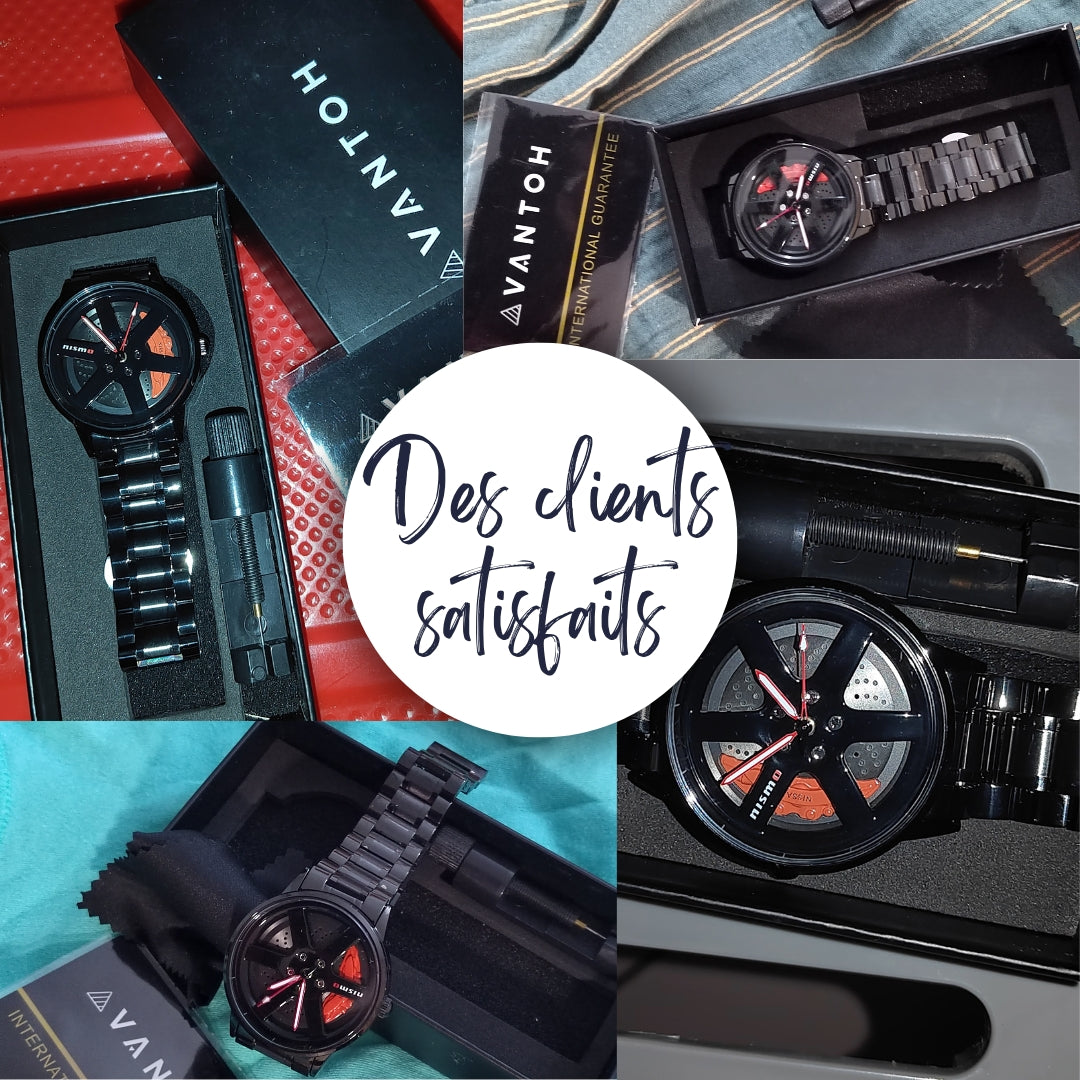 Nous offrons deux catégories uniques de montres : à mouvement fixe et à mouvement rotatif. Les montres à mouvement fixe s'alignent sur un design classique, tandis que nos montres rotatives offrent une innovation captivante. Dotées d'une roue élégante intégrée au cadran, elles tournent lorsque vous bougez votre poignet, évoquant l'allure d'une voiture en déplacement !