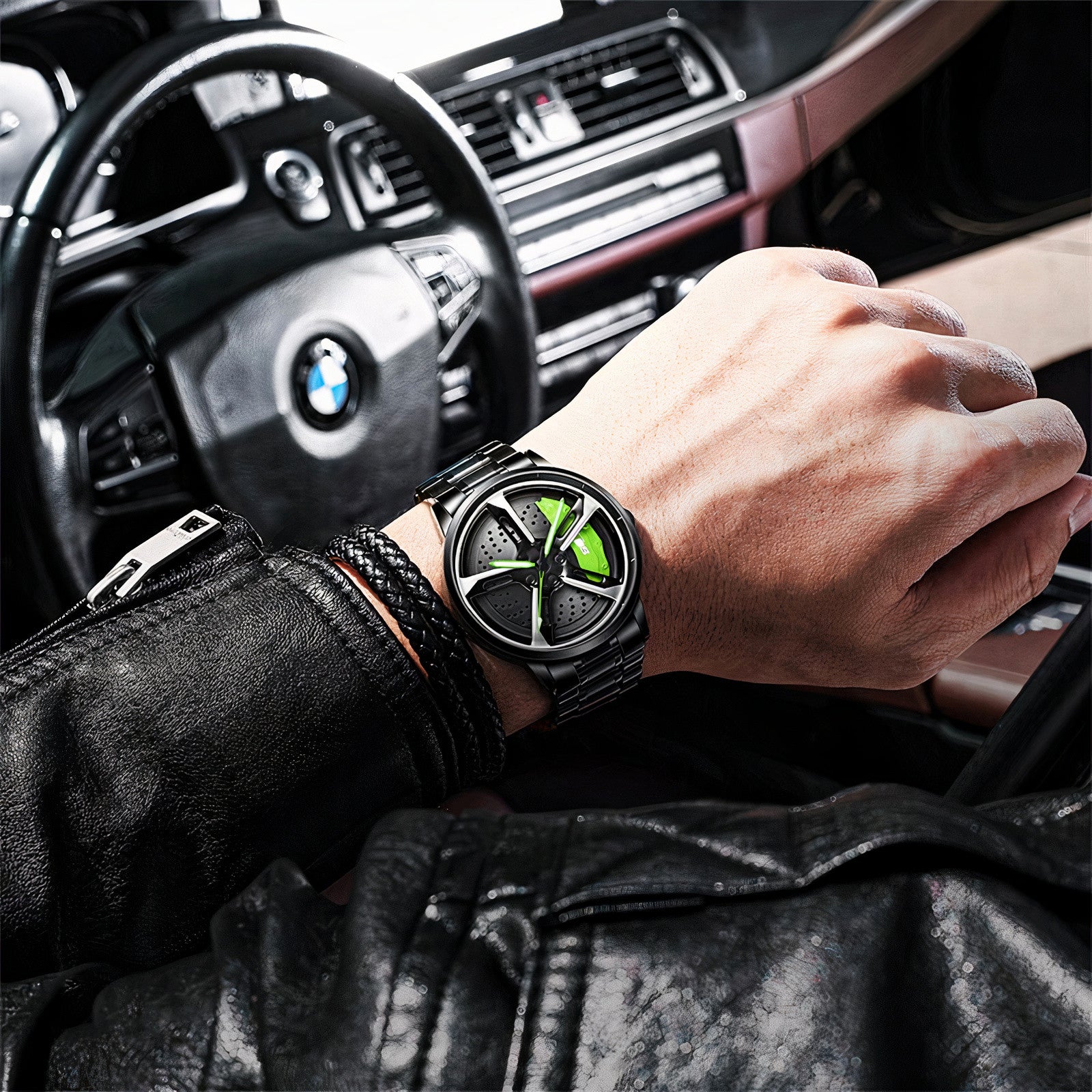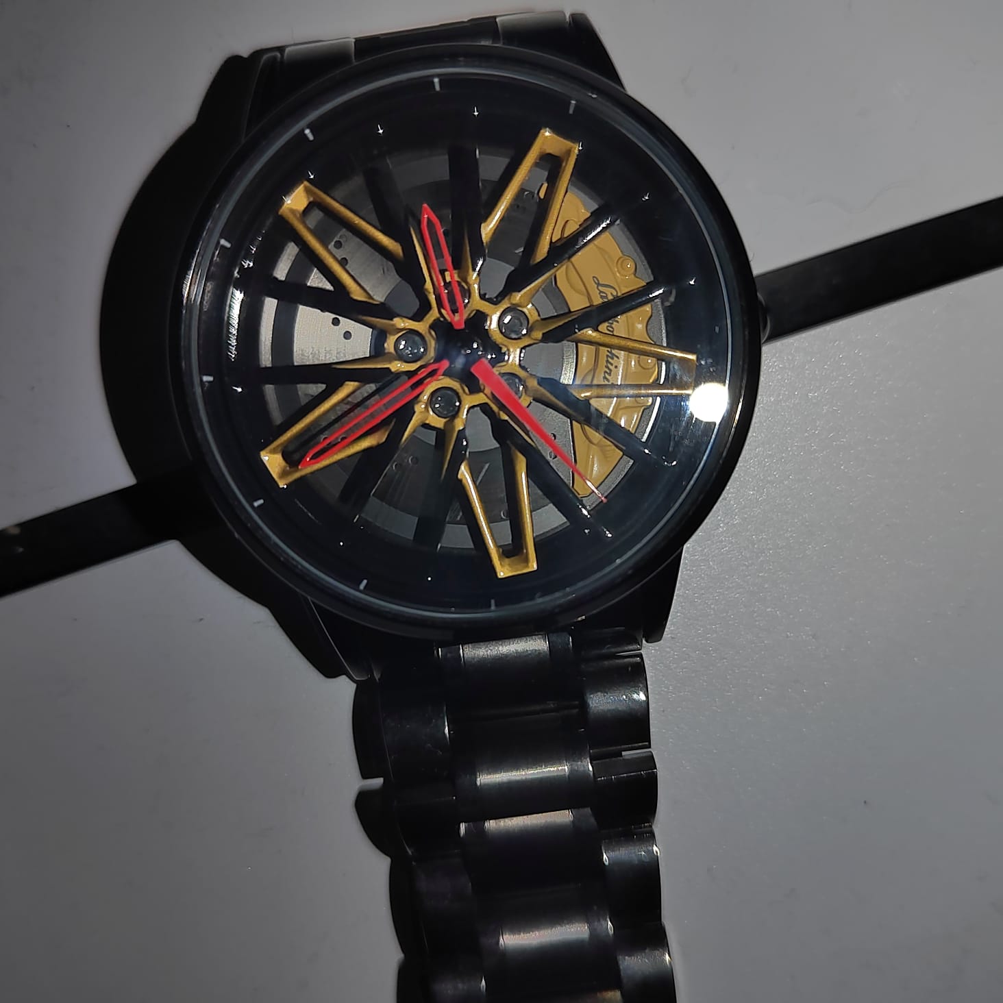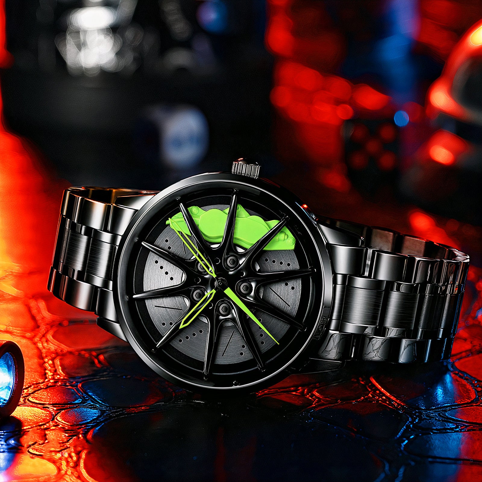 Pour les passionnés de voitures, cette montre est un accessoire indispensable. Son design unique et audacieux rappelle une jante de voiture avec des étriers de frein.