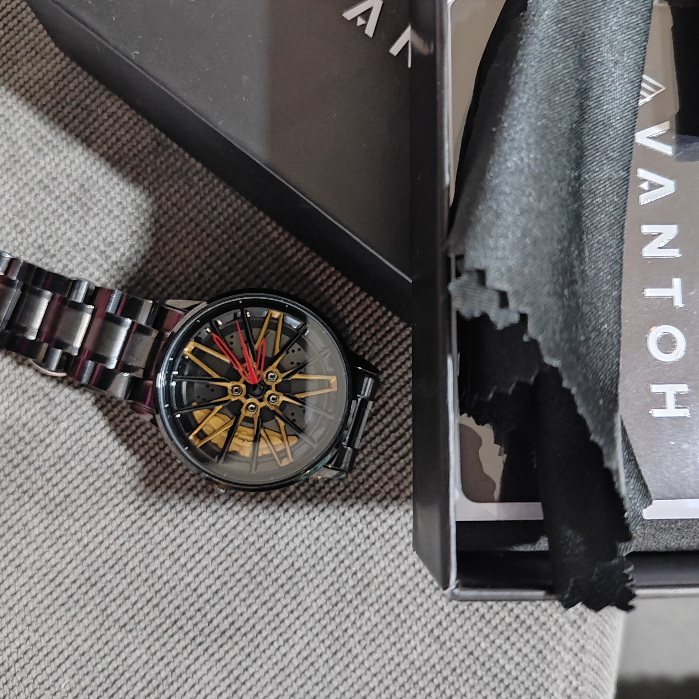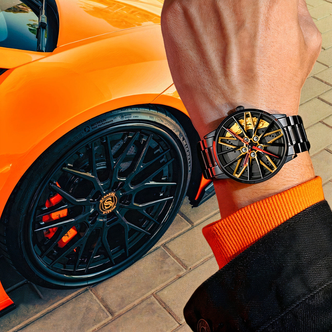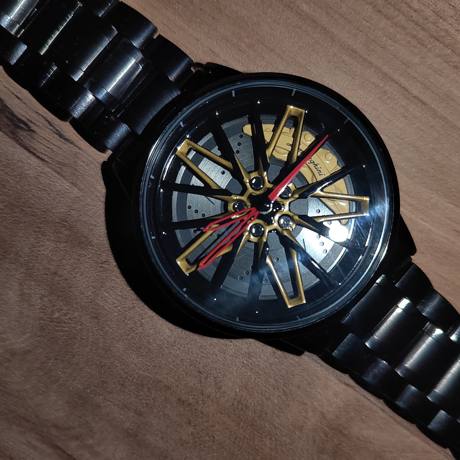 Pour les passionnés de voitures, cette montre est un accessoire indispensable. Son design unique et audacieux rappelle une jante de voiture avec des étriers de frein.