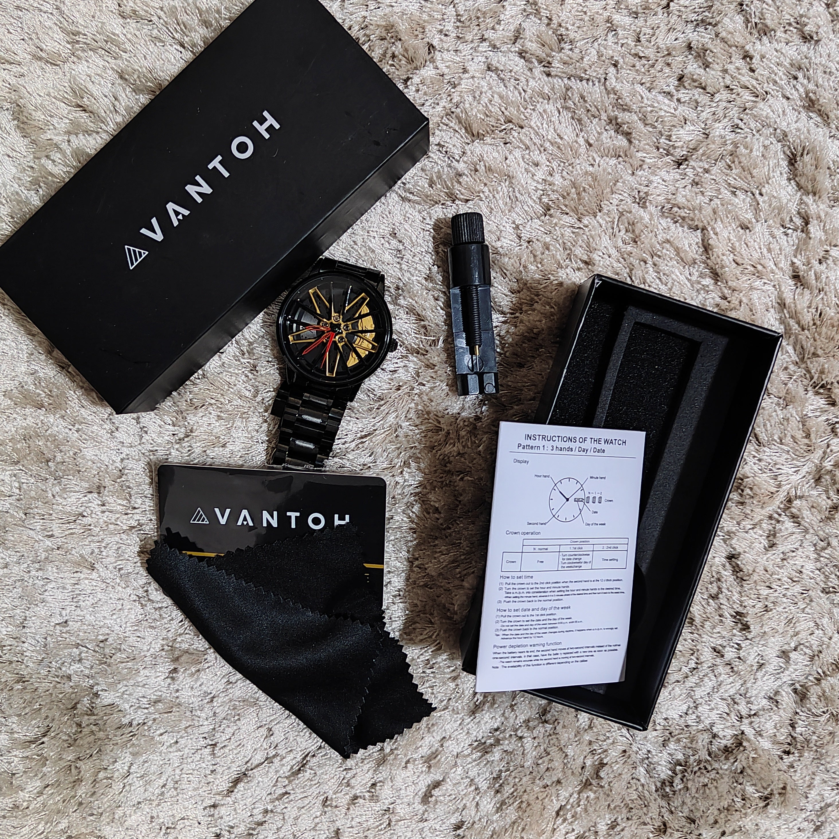Chaque montre AVANTOH™ est accompagné d'un outil de réglage précis qui vous permet d'ajouter ou de retirer des maillons en fonction de vos besoins. Ainsi, notre montre a la garantie de s'adapter à toutes les tailles de poignet.